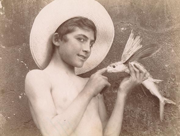 - Example: This 1899 portrait of a young man with a fish by Wilhelm von Gloeden was uploaded in 2005 but then overwritten in 2010 by a full length un-cropped version. Though the intent was to restore the image to a better quality version, the overwrite proved highly controversial as it changed the context from a modest pose to a nude with potential erotic connotations. In some existing transclusions this change was unwanted and caused controversy. Uploading the higher quality image as a separate file would have avoided this.