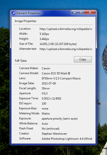 Beispiele von Exif-Tags[Bearbeiten | Quelltext bearbeiten]