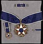 Ein fünfzackiger goldener Stern, weiß emailliert, auf einem roten Fünfeck (als Trägerkissen). In der Mitte eine blaue Scheibe mit den 13 goldenen Sternen des US-Wappens. Der Stern wird von einem Ring aus fünf goldenen Wappenadlern gefasst.
