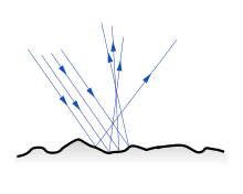 Grenzflächen mit einer großen Rauheit relativ zur Wellenlänge reflektieren diffus. Enthält das Material viele Streuzentren, folgt die Reflexion dem lambertschen Gesetz. Die Hauptrückstreuung erfolgt dann senkrecht zum Material, unabhängig von der Einstrahlungsrichtung. Beispiele sind Milch, Wandfarbe oder Papier. Bei Milch haben die Fetttropfen im Wasser die Größenordnung der Wellenlänge des sichtbaren Lichtes und bilden die Streuzentren für Lichtwellen, gleiches gilt für die Lufteinschlüsse zwischen den Fasern bei Papier.