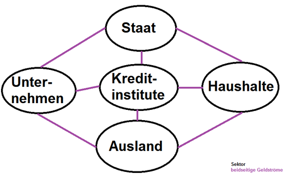 Falls die Geldmenge einer Volkswirtschaft erhöht werden soll, muss ein Nicht-Banken-Sektor (Staat, Unternehmen, Ausland, Haushalte) einen Kredit aufnehmen.