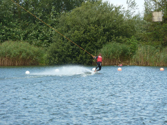 Jetzt, 4 Jahre später, machen wir Familienurlaub im Norden – bei Hallas! Ich freue mich riesig, Tobi zu sehen und wir unternehmen viel. Eines Tages, in Schleswig-Holstein hat man heute leider keine Ferien und so kann Tobi nicht mit, gehen wir Wasserskifahren. Wasserskifahren ist wie Skifahren, nur eben auf Wasser. Und um nicht unterzugehen, muss man schnell genug über das kalte Nass gleiten. Als Anfänger, die wir sind, zieht uns eine Art Skilift, an dem man sich mit beiden Händen stets festhält im Kreis um den See. Schnell finde ich gefallen an der Sportart und kann gar nicht erst abwarten, wieder an der Reihe zu sein. Nach einiger Zeit meint unser Wasserskilehrer zu mir, ich habe ein ausgesprochenes Talent für die Sportart. Vorläufig bekomme ich den Wasserskischein ausgehändigt und kann mich jetzt, dankenswerterweise da nie dafür gezahlt, auch im Wakeboarden ausprobieren. Auch hier finde ich schnell rein und so darf ich am Ende des Tages sogar über eine Rampe springen und weitere Teile des Parcours im angrenzenden See nebenan befahren. Alles in Allem ein riesen Spaß. Und wenn sich noch einmal die Möglichkeit dazu bietet, würde ich gerne mal wieder auf Wasserskier -und Board steigen.