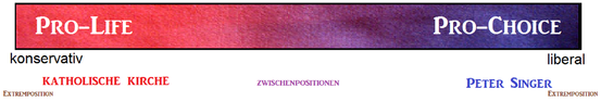Angelehnt an die beiden US-amerikanischen Bewegungen lassen sich holzschnittartig zwei Lager unterscheiden: „Pro-Life“ für all jene, die eher gegen Abtreibung sind und „Pro-Choice“ für tendenziell der Erlaubnis einer Abtreibung zugeneigte Positionen. Diese eingestanden stark simplifizierende Unterscheidung soll im Folgenden beibehalten werden der flüssigen Lesbarkeit des Textes dienen.