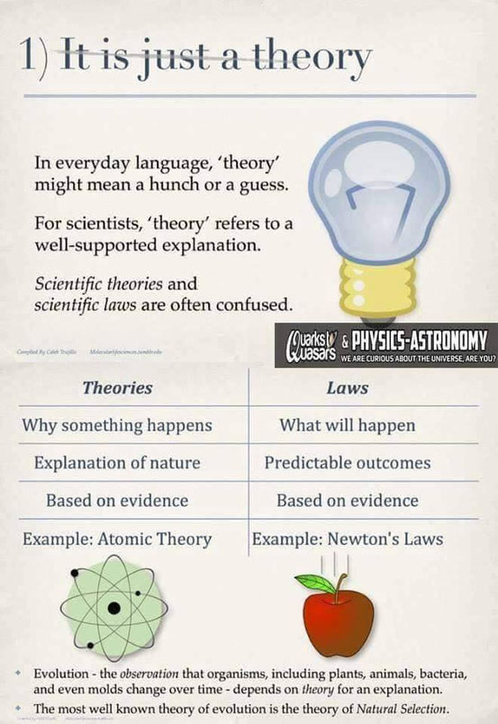 Jedenfalls zeugt dieser Satz von einem tiefen Missverständnis, der Unkenntnis was in der Wissenschaft Theorien und Gesetze sind. Unserer Ansicht nach müsste man es nämlich eher umgekehrt formulieren: Es ist ja nur ein Gesetz, nichts so Großartiges wie eine Theorie (wenn man uns diesen Äpfel – Birnen Vergleich verzeiht).