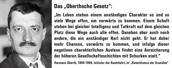 - Hermann Oberth, in: "Katechismus der Uraniden", Wiesbaden 1966, S. 94/95