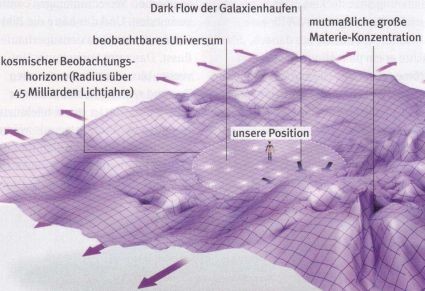 Horizont gleichförmig aussieht -der Dark Flow zeigt, dass dieser Eindruck täuscht. Es ist so, als würde man im Golfstrom schwimmen und irgendwann entdecken, dass man abtreibt. Und vielleicht