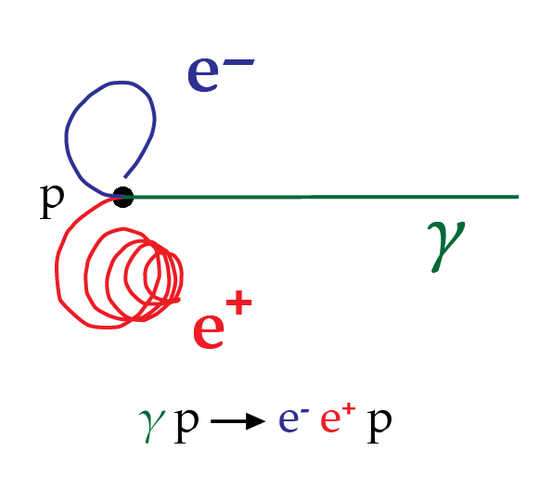 Die Diskrepanz zwischen Materie und Antimaterie ist schon an einem viel einfacheren Beispiel zu sehen, bei der Paarerzeugung: