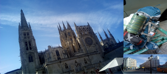 Unser Weg führt uns von Santander über Burgos zum allgemeinen Pilgerziel des Jakobsweges: Santiago de Compostela. Der Rückflug ist ja schon gebucht, weswegen wir die Strecke innerhalb eines gewissen Zeitrahmens von etwa drei Wochen laufen sollten. Deshalb machen wir uns, gelandet am Flughafen Santander, auch gleich daran Nahrung (die mitzunehmen zufolge gehabt hätte, dass unser Gepäck das Maximalgewicht überschritte) und einen Gaskocher (mit dem wir gar nicht erst durch die Sicherheitskontrollen gekommen wären) einzukaufen. Dass dies mehr als ein Nachmittagsspaziergang werden würde, deutet sich bereits jetzt an, während wir mit guten 17-Kilogramm Rucksack auf dem Rücken die Läden aufsuchen. Essen findet sich schnell, der städtische Campingladen jedoch ist pleite, weswegen wir den Rest in der nächstgrößeren Stadt Burgos werden kaufen müssen.