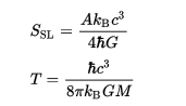 Hawking erkannte 1974 nach Vorarbeiten des israelischen Physikers Jacob Bekenstein, dass Schwarze Löcher eine formale Entropie und somit auch eine formale absolute Temperatur T haben. Die formale Entropie S(SL) eines Schwarzen Lochs ist proportional zur Oberfläche A seines Horizonts und sonst nur von Naturkonstanten abhängig; die formale Temperatur ist umgekehrt proportional zur Masse:
