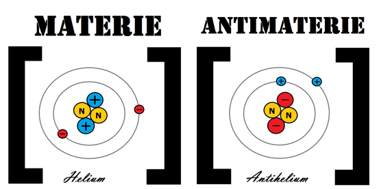 Ladungstechnisch ist Antimaterie nun das genaue Gegenstück zur Materie: Negativ geladene Anti-Protonen und weiterhin neutrale (aber nicht gleiche!) Neutronen im Kern und positiv geladene
