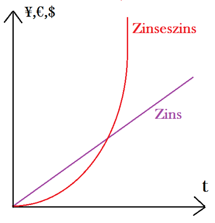 Der Zinseszins ist der Zins auf den Zins. Folglich wird der Zinseszins immer dann berechnet, wenn der Zins aus der hervorgegangenen Rechnungsperiode als Teil der Geld-oder Schuldmenge bestehen geblieben ist. Dies ist beispielsweise der Fall, wenn eine Person den Zins auf ein Geldguthaben reinvestiert. Auch wenn ein Schuldner den Sollzins für ein Darlehen nicht begleicht, wird dieser Zins verzinst.