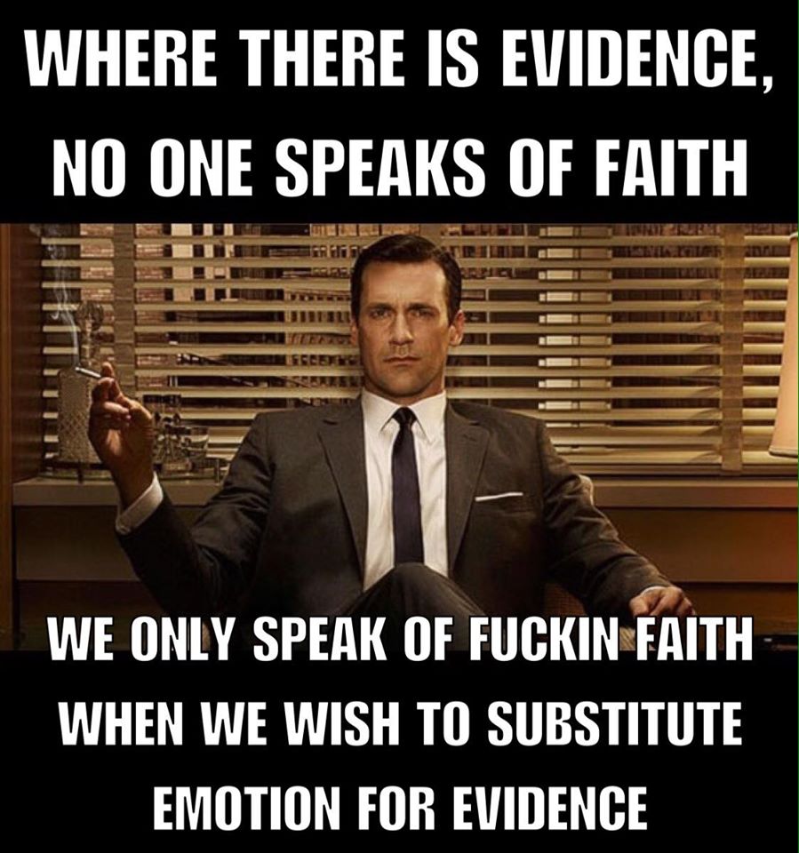 "Faith" is the excuse people give when they son't have a good reason.