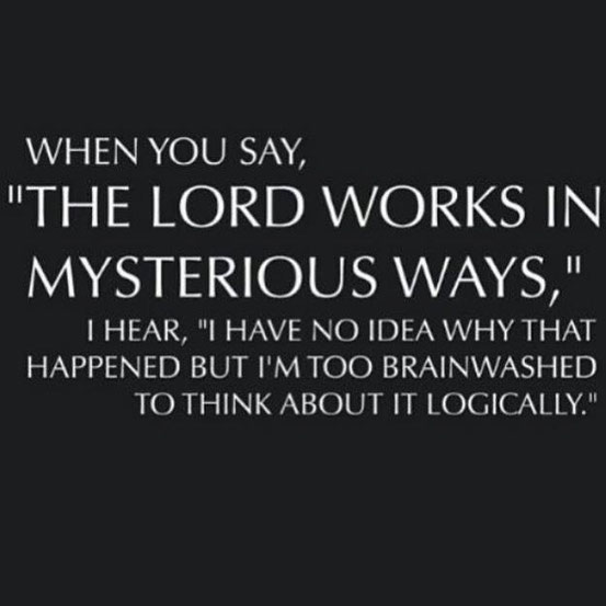Um dann als Antwort zu bekommen: Unser Gott unterliegt eben nicht den Gesetzen der Logik. Man muss einfach an ihn glauben!
