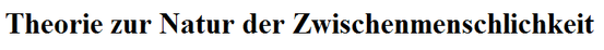Hier werde ich meine Theorie zur Natur der Zwischenmenschlichkeit erläutern. Diese kann und wird auch schon aufgrund ihrer Prägnanz nicht vollständig sein. Das heißt, dass viele Aspekte zwischenmenschlicher Beziehungen entweder gar nicht oder nicht ausdifferenziert dargelegt werden. Auch sind Fehler bei den ausgeführten Punkten natürlich möglich und sicher auch vorhanden. Generell habe ich diesen Aufsatz nicht mit dem Anspruch auf Vollständigkeit oder universeller Gültigkeit geschrieben. Vielmehr entspringen die ihm zugrunde liegenden Gedanken Erfahrungen aus meinem oder dem Privatleben meiner Mitmenschen. Was dabei wem zuzuordnen oder anonymisiert ist, wird nicht angemerkt, da das das Internet nichts angeht. Die Theorie als Ganzes umfasst dabei folglich einen Teil meines, mittlerweile 19-jährigen, direkten oder indirekten Erlebnisspektrums. Mehr nicht - und dies will sie auch nicht. Eher deutlich weniger. Denn es ist besonders ein Punkt, auf den ich mich konzentrieren möchte. Ein Punkt, den ich in seinen unterschiedlichen Facetten und Ebenen beleuchten möchte. Ein Punkt, der mir einerseits so essentiell vorkommt, und den ich andererseits so nicht niedergeschrieben kenne.