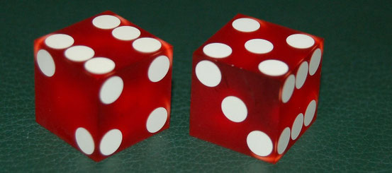 Beispiel (1): Die Wahrscheinlichkeit mit einem Würfelwurf eine "6" zu würfeln, sei p = 1/6. Sie ergibt aus der Anzahl der günstigen Fälle (eine 6 würfeln) durch die Anzahl der überhaupt möglichen Würfel (eine 1, 2, 3, 4, 5, 6 würfeln).