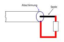 Sind Innen- und Außenleiter des Koaxialkabels über einen Widerstand R = Z verbunden, fließt die elektrische Energie reflexionsfrei in diesen Abschlusswiderstand, der sich entsprechend erwärmt. Am Einspeisepunkt (Kabelanfang) kann man diesen Fall nicht von einem unendlich langen Kabel unterscheiden.