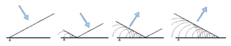 In der Schemazeichnung (siehe Reflexionsgesetz) trifft ein Strahl von links oben auf die Oberfläche eines Mediums mit anderen Strahlungsausbreitungseigenschaften. Ein Teil der Strahlung wird zum Lot hin gebrochen (transmittierter Teil), ein anderer reflektiert. Dabei gilt das Reflexionsgesetz: Der Einfallswinkel ist gleich dem Reflexionswinkel. Unter geeigneten Bedingungen kann jedoch die einfallende Strahlung vollständig reflektiert werden, wie bei Totalreflexion.