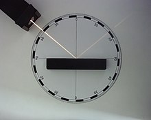 Das Reflexionsgesetz besagt, dass der Ausfallswinkel (auch Reflexionswinkel) genau so groß wie der Einfallswinkel ist, , und beide mit dem Lot in einer Ebene, der Einfallsebene, liegen. Im Fall von Wellen muss dabei die Wellenlänge erheblich größer sein als die Abstände zwischen den Streuzentren (beispielsweise Atome). Andernfalls kann es zur Ausbildung mehrerer „Reflexionsstrahlen“ kommen,[1] beispielsweise bei Röntgenstrahlen, die an einem Kristall reflektiert werden (siehe Röntgenbeugung).