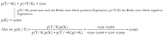 Es sei: K º Die Krankheit liegt tatsächlich vor; T º Das Testergebnis ist positiv.